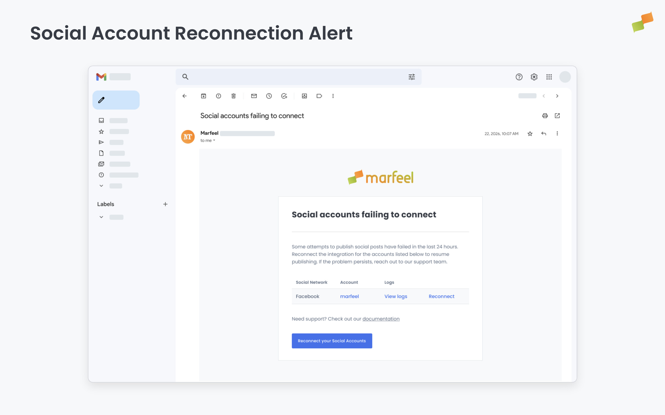 When publishing attempts fail due to disconnected or expired integrations, Social Media Admins and Feed Admins receive an email listing exactly which networks and accounts need reconnection.
