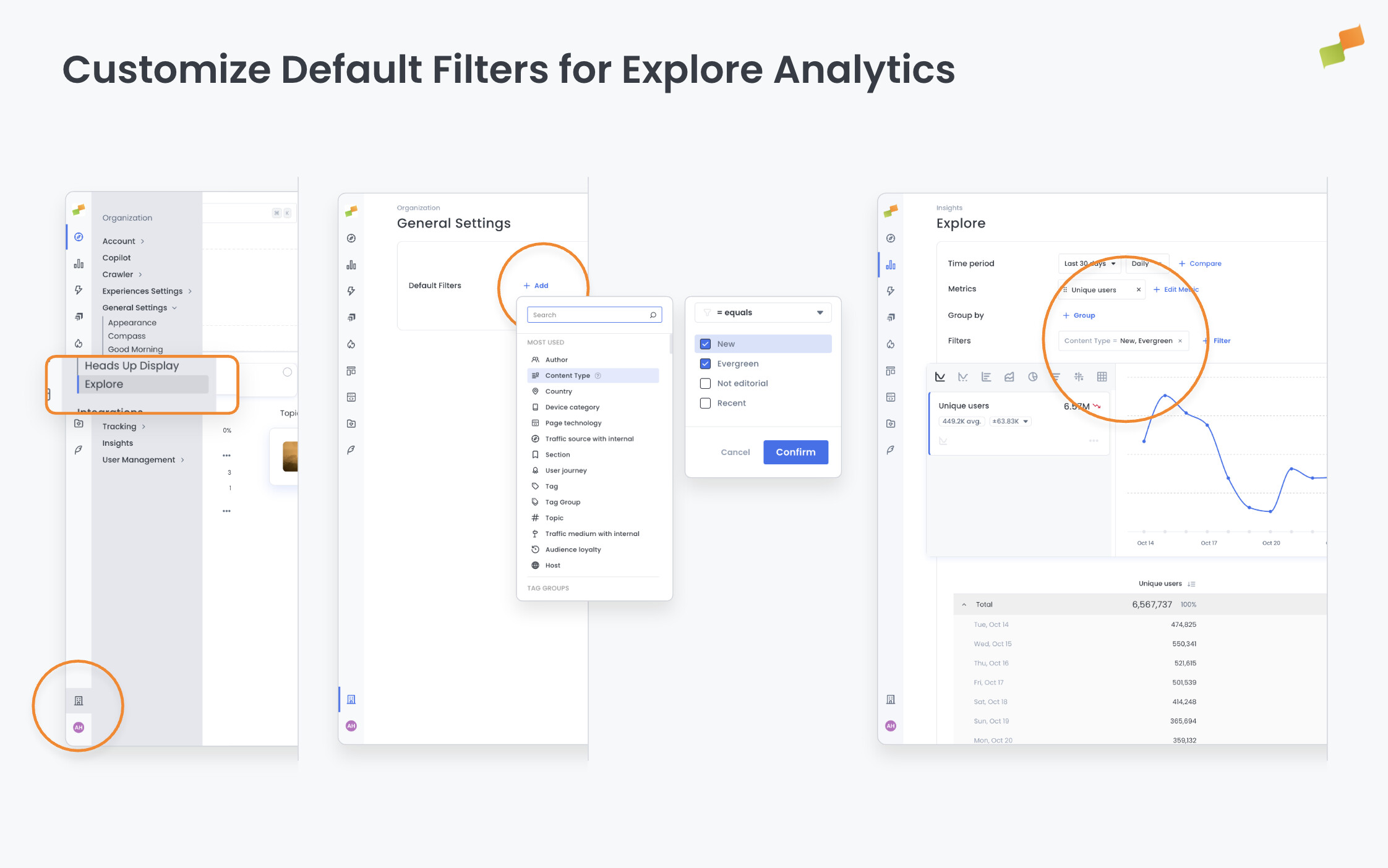 Administrators can now set up default filters that automatically appear when team members open the Explore page. This helps everyone start with the right data view immediately, saving time and ensuring consistency across the team. Users can still adjust or remove filters as needed.