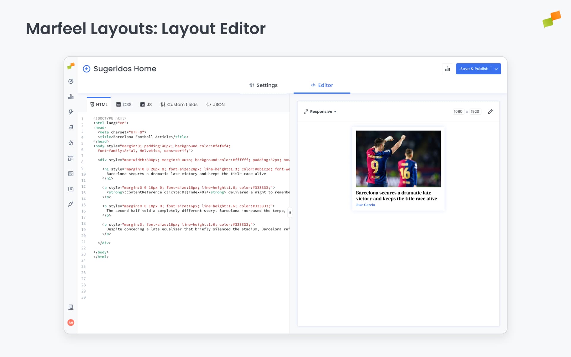 Create and customize layouts for social media, recommender, and content experiences using the Layout Editor. Write HTML, CSS, and JavaScript in a code editor while seeing changes instantly in a real-time preview.