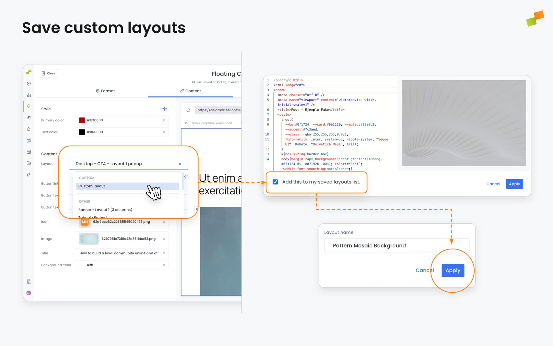 Marfeel Experience Manager now lets you save custom HTML layouts directly to your permanent layouts library, making it easy to reuse your work across multiple experiences.